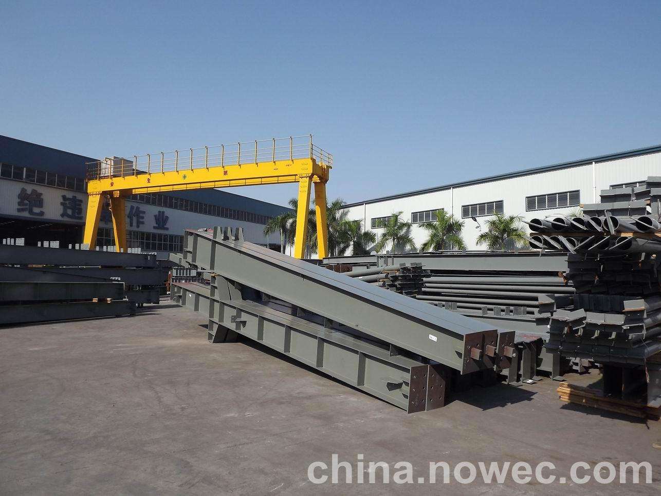 条状单元一般沿长跨方向分割,其宽度约为1~3个网格,其长度为l2或l2/2(l2为短跨跨距)。块状单元一般沿景德镇网架平面纵横向分割成矩形或正方形单元。每个单元的重量以现有起重机能胜任为准。条(块)与条(块)之间可以直接拼装,也可空一网格在高空拼装。由于条(块)状单元是在地面拼装,因而高空作业量较高空散装法大为减少,拼装支架也减少很多,又能充分利用现有起重设备,故较经济。这种安装方法适用于分割后网架的钢度和受力状况改变较小的各类中小型网架,如两向正交正放四角锥、正放抽空四角锥等网架。